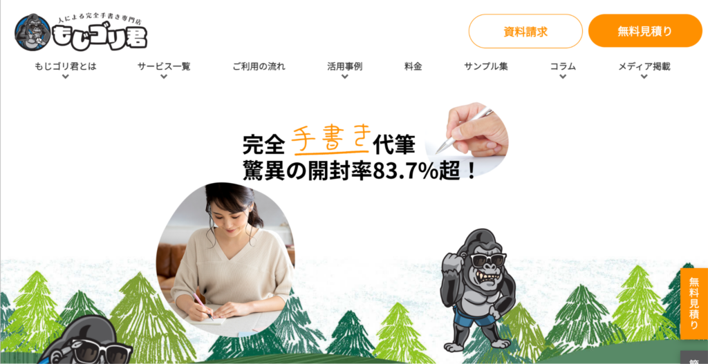 文字ゴリくん700名以上のレタリストによる完全手書き代筆専門。累計300社以上のABテスト実績。開封率83.7%の実績あり。従量課金型要見積もり